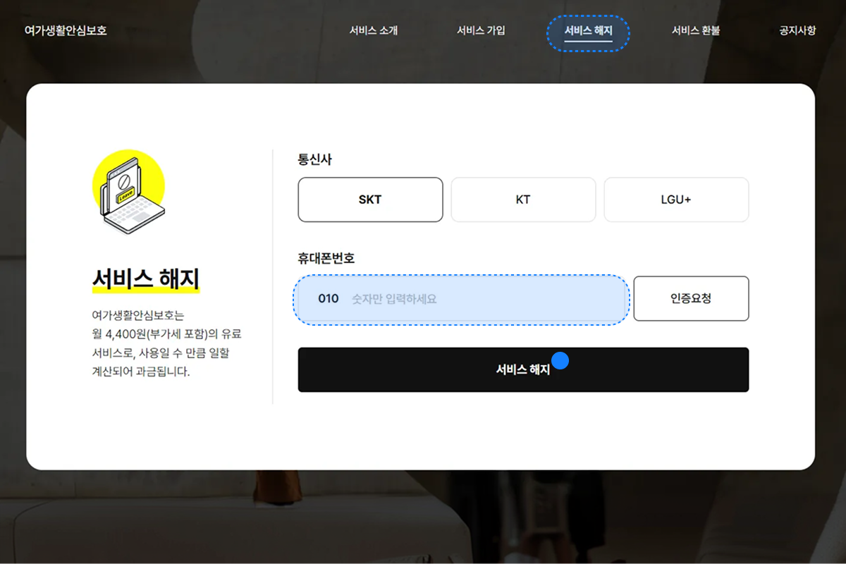 여가생활안심보호 홈페이지를 통한 해지 방법